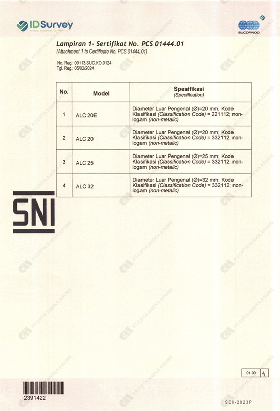 ALCO Merupakan produk PIPA Conduit , Fitting Conduit UPVC dan Ducting Conduit yang berfungis sebagai penyalur instalasi listrik dan pelindung kabel untuk di dalam permukaan dinding ataupun tanah , dengan Kualitas yang tidak mudah pecah dan berstandard International IEC dan SNI.